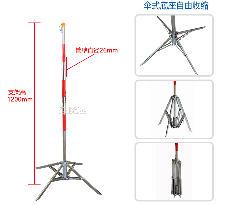 產品特點:不銹鋼管制成,紅白相間,下面為傘式支撐